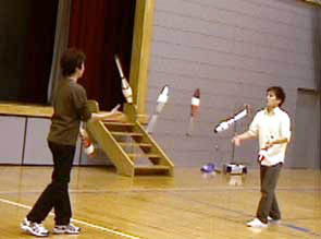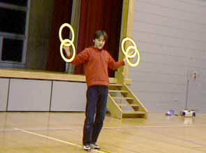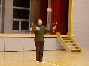 小平ジャグリングクラブ初の発表会は六小体育館で所沢ジャグリングクラブ・ジャグフライと共同で行われました。演技者13名、自分の好きなときに演技をし、笑いと拍手の中楽しく終えることができました。普段見ることのできない他のクラブの人の発表はとても面白く、マイム等の演技もKJCならでは。発表会はそんなに大げさなものではなく、また特に順位をつけたり賞をだしたりもしませんでしたが、これからも続けることで誰でも手軽に自分のパフォーマンスを発表しあえる場になればと思います。