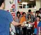 途中数人の子供たちを前に呼びボール、シガーボックス、皿回し、フラワースティックの体験を行いました。