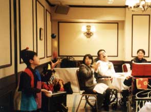 京王プラザホテル八王子であった、しょう害者の人たちの成人を祝う会に行きました。車いすに乗っていたりうまくしゃべれない人たちが15人くらい、そしてひとりひとりにその人たちのお世話をするスタッフの人たちがついていました。