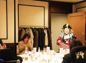 ぼくとつつみさんはまず最初に、みんながテーブルでごちそうを食べている前で芸をしました。つつみさんはフラワースティックを、ぼくは3ボール、4ボールとクラブのルーティーンをやりました。最初からみんなすごく喜んでくれました。
