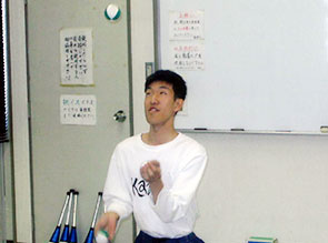 今回は一時間のステージとビンゴゲームの景品となるバルーン作り。ディアボロは今回初めての挑戦でしたがかなりの好感触でした。ボールは緊張の余りいくつか技を飛ばしてしまいました。ミスは少なかったのでもっと自信を持ってやれればと思いました。リングは5枚が一回で成功させる事が出来ました。