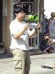 最初はディアボロ。本日でパフォーマンス3回目の永井君はBGMに合わせたルーティンを披露しました。 永井君は紐を絡めて一瞬で解く、マジックノットを中心に演技しました。1分ちょっとの時間でしたが、拍手もきちっともらう事ができ、本人にとって大きな経験になったと思います。デビューの頃と比べると、落ち着いて演技ができるようになったのが分かります。