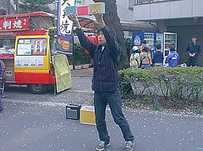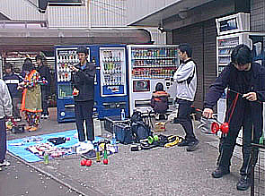 残りの4人で、実演販売と路上パフォーマンスを交代で行ないました。