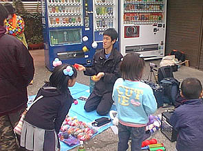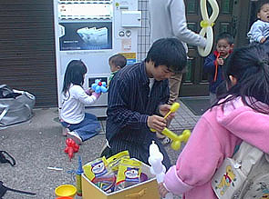 堤さんは売り場近くでずっとバルーンを作っていました。ネコピエロの衣装と相まって、いつもお客さんが列を作っていました。