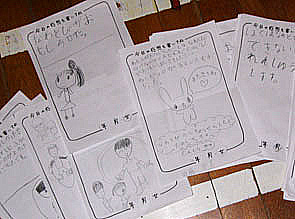最後に総数73通もの感想文をいただきました。こどもたちの感想が読めて、すごく嬉しかったです。ほとんどの人が「面白かった。また来てね。」と書いてくれました。イラストを描いてくれた人もいっぱいいました。どうもありがとう!