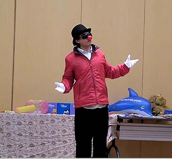 英会話教室に通う子供達とその保護者、約100名弱が公民館に集まります。今年で7回目、毎年、7年間も呼んでいただいています。今年は私も入れて6名の出演です。最初に30分の私達のショー。今回、私は、MCに徹して、5名の演目順の構成と紹介、進行をしました。