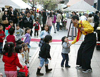 2008/4/5(土) 場所 = 目黒区自由が丘駅南口遊歩道 出演時間と回数 = 16時から17時30分まで、ひとり30分ずつ3ステージ 出演:クラウンラビット(堤)、合部蔵人(阿部)、nasa(船木)